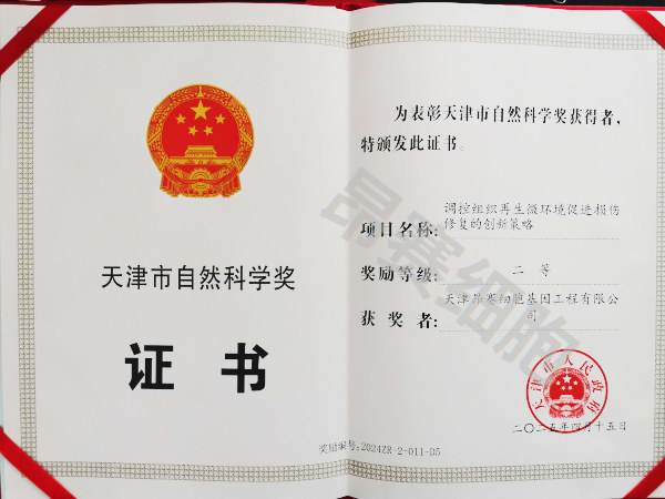 公司合作项目《调控组织再生微环境促进损伤修复的创新策略》获得天津市自然科学二等奖。